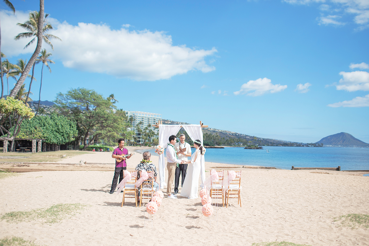 Dreaming of a ceremony at the beach? Aloha Beach Wedding - Basic Package and All Inclusive Value Package - at romantic beachfront are held at Public Beach Park in Oahu Island. Island Beach Wedding is most popular for ' 'I Do Wedding' and 'Vow Renewal'. Simply romantic beach wedding packages start from $399 and all-inclusive packages start from $700 for self-wedding snap and $900 for wedding ceremony including wedding dress, tuxedo, all accessories, location fee and photographer etc. Contact us for more details. *Location: Magic Island, Queen Kapiolani Beachpark, or Kahala Waialae Beach Park.